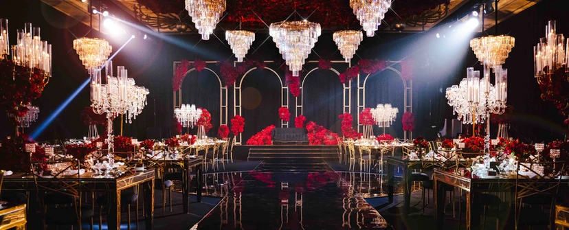 The idea was to create a wedding revolving around a floating crystal chandeliers.